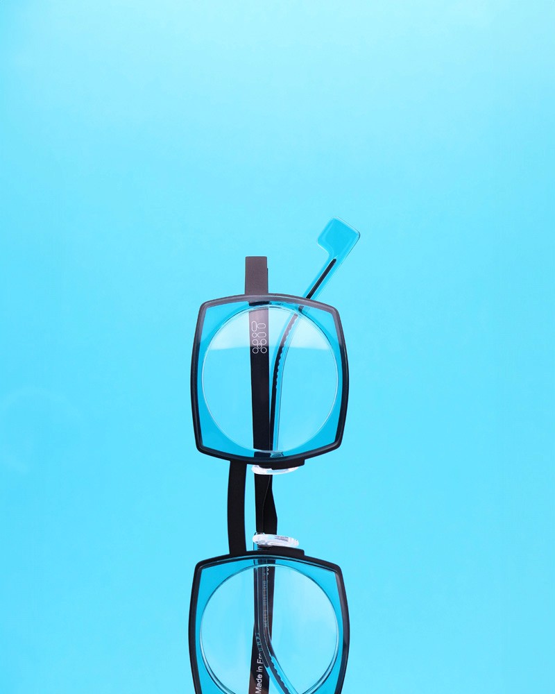 Coloris : Métal noir et acétate bleue translucide — Black metal and translucent blue acetate