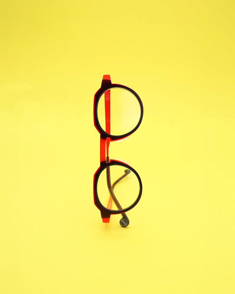 La collection explore la rencontre entre légèreté et contraste, où l’acétate translucide et coloré se mêle au métal, laissant passer la lumière et révélant des reflets changeants.
