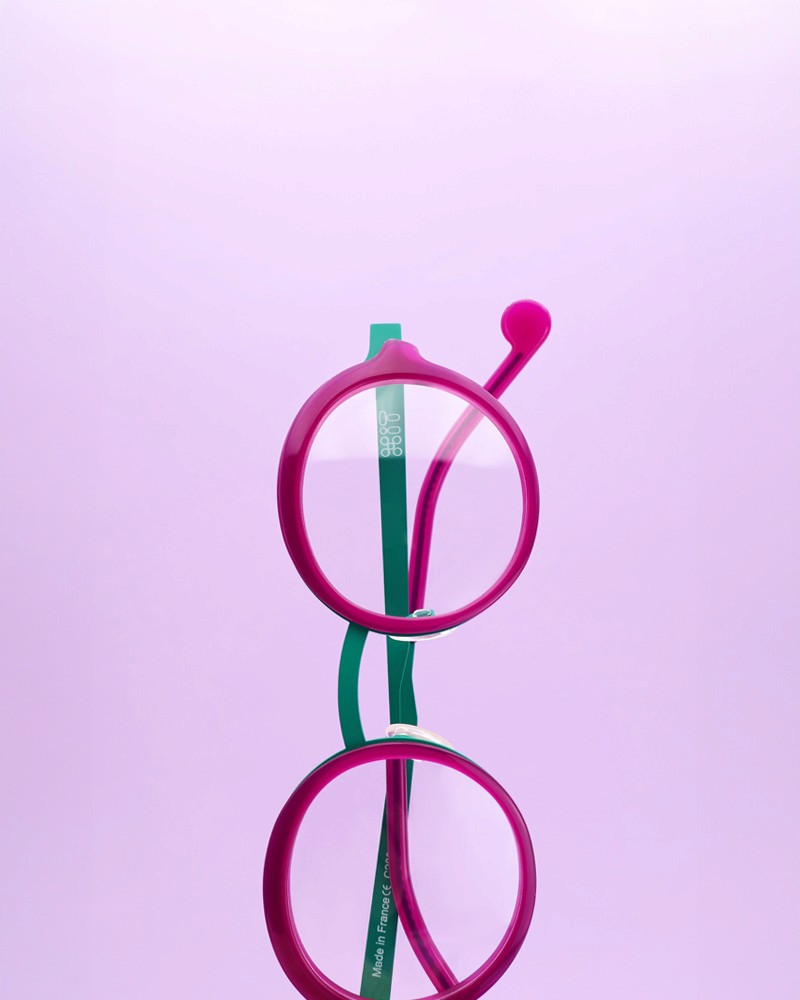 La collection explore la rencontre entre légèreté et contraste, où l’acétate translucide et coloré se mêle au métal, laissant passer la lumière et révélant des reflets changeants.