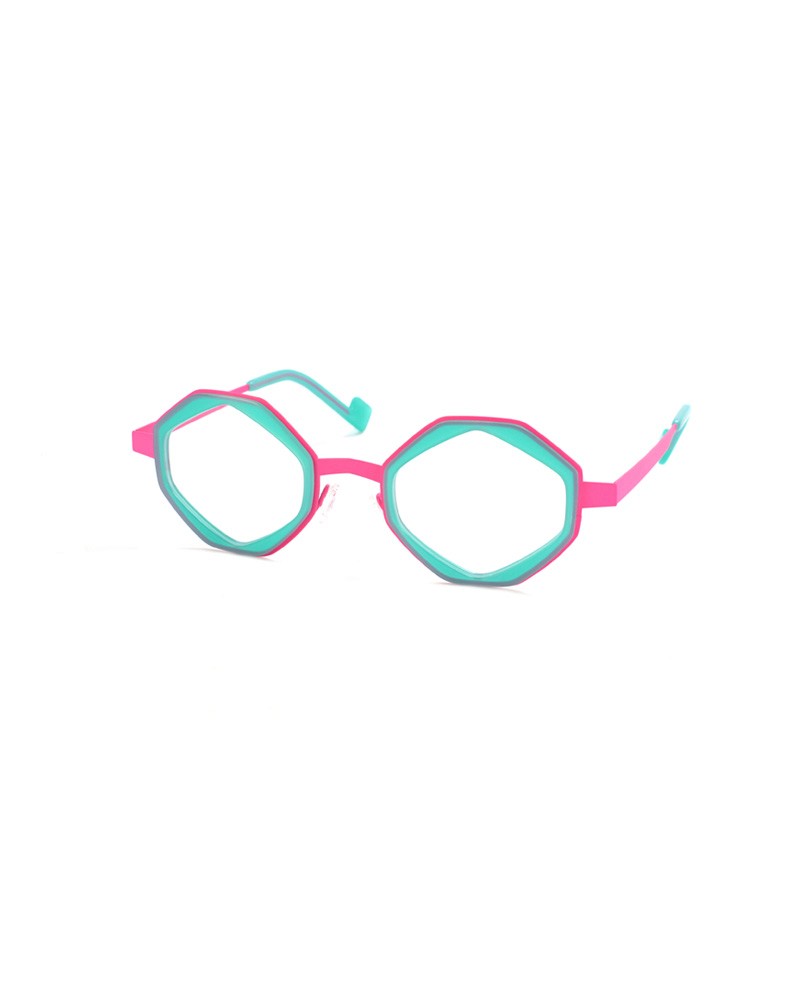 Coloris : Métal rose fluo et acétate menthe — Fluorescent pink metal and acetate mint