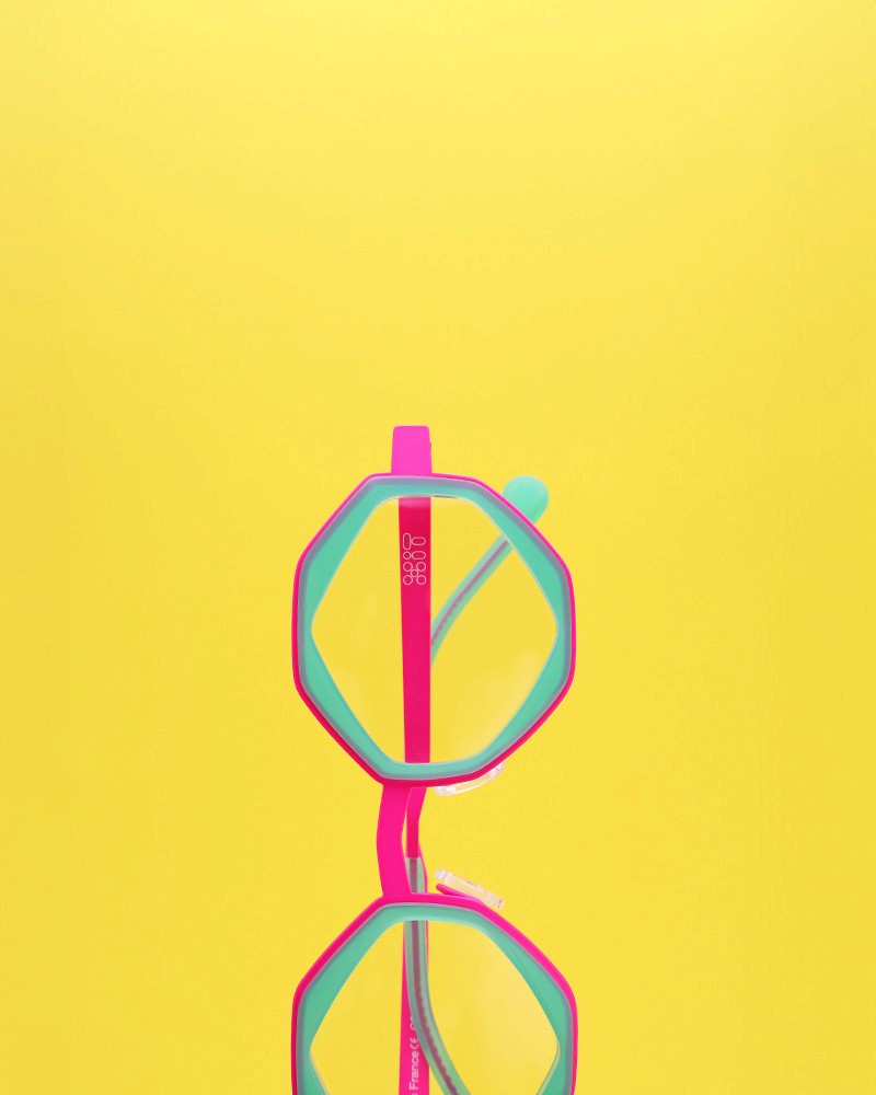 La collection explore la rencontre entre légèreté et contraste, où l’acétate translucide et coloré se mêle au métal, laissant passer la lumière et révélant des reflets changeants.