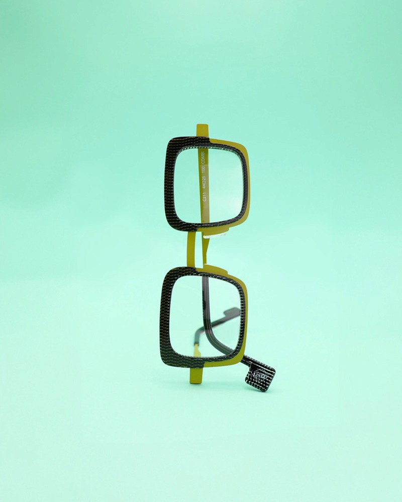La collection associe l’acétate, affinée sur le bas pour souligner le regard, au métal, créant un contraste élégant entre légèreté et structure. La transparence et la couleur de l’acétate mettent en valeur la forme et le regard.