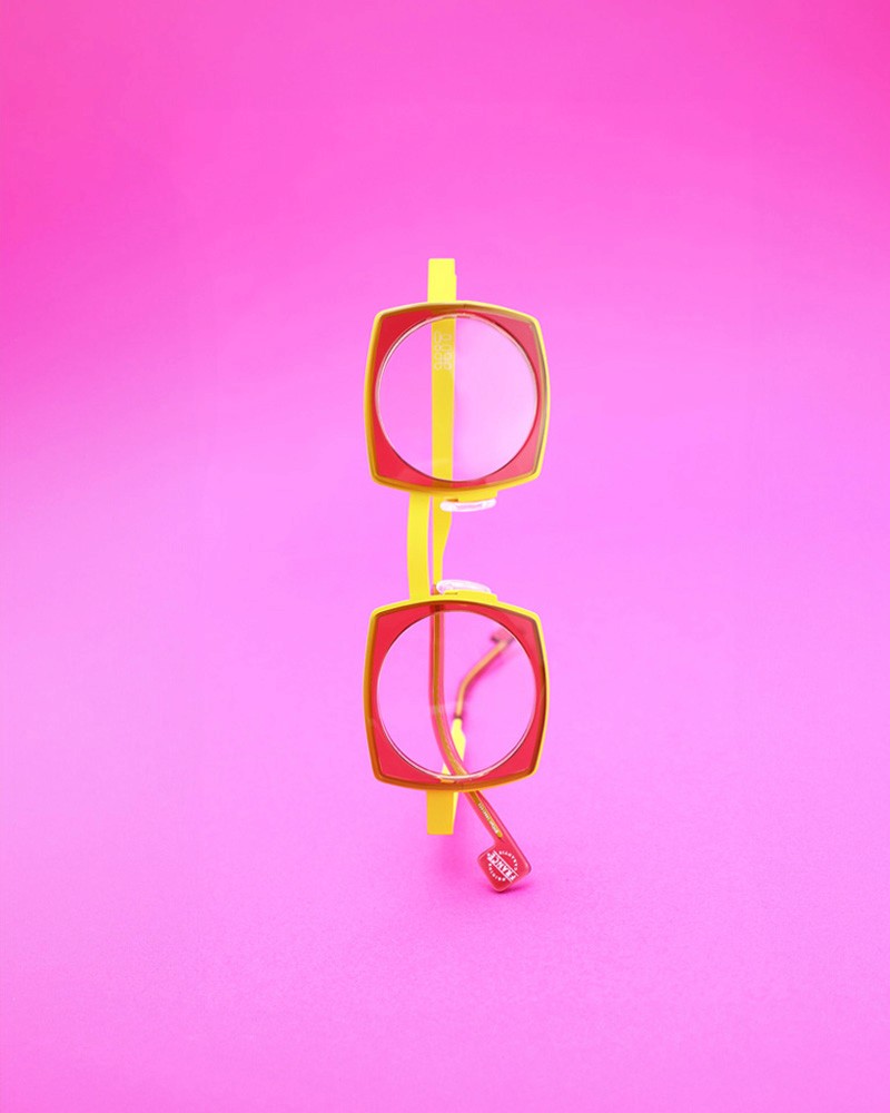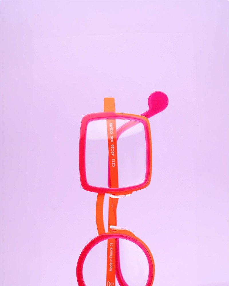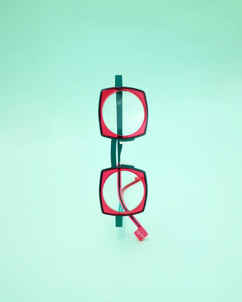 La collection associe l’acétate, affinée sur le bas pour souligner le regard, au métal, créant un contraste élégant entre légèreté et structure. La transparence et la couleur de l’acétate mettent en valeur la forme et le regard.