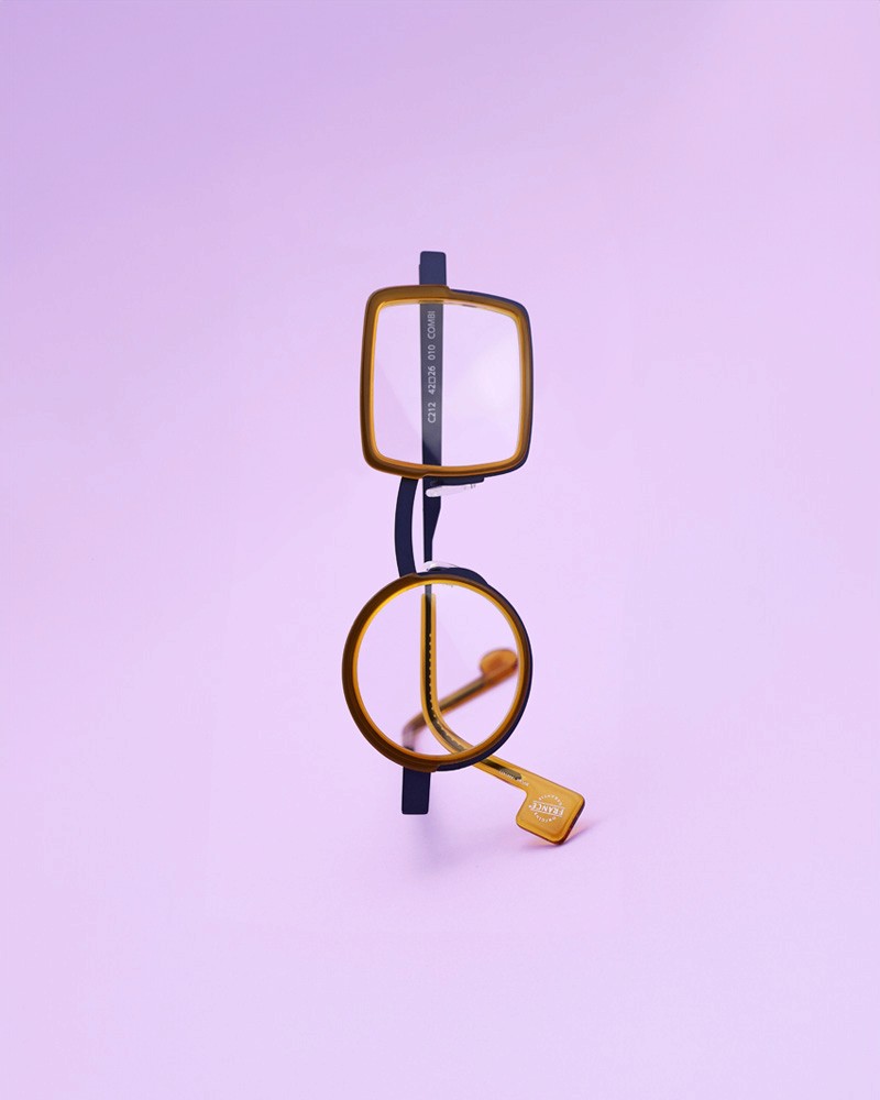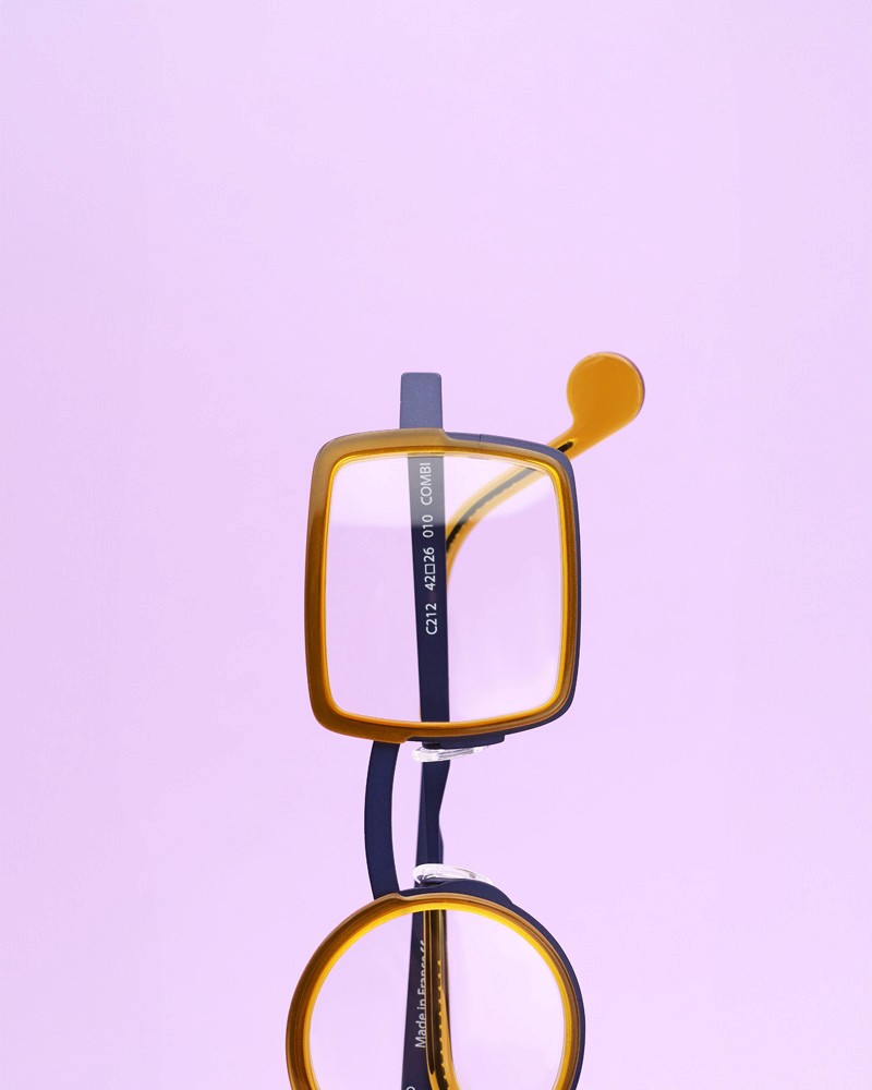 La collection associe l’acétate, affinée sur le bas pour souligner le regard, au métal, créant un contraste élégant entre légèreté et structure. La transparence et la couleur de l’acétate mettent en valeur la forme et le regard.