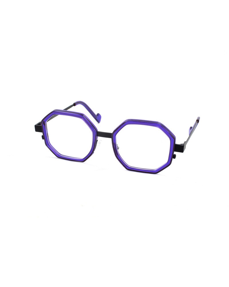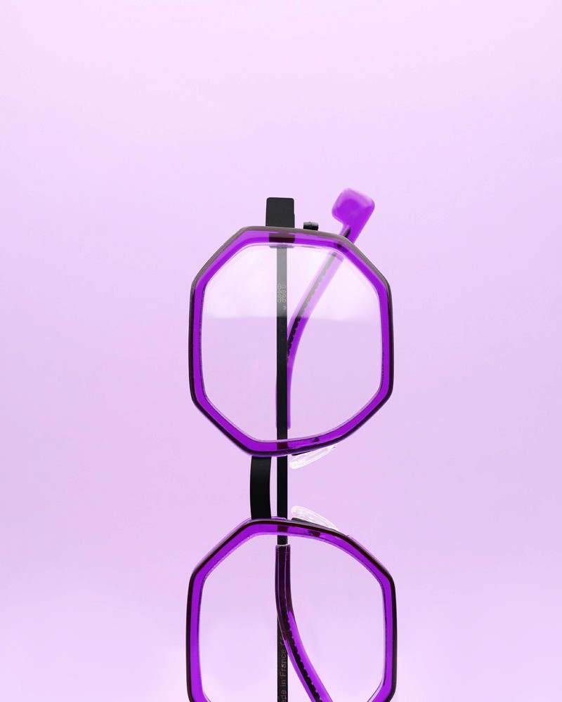 Coloris : Métal noir et acétate translucide violet — Black metal and translucent purple acetate
