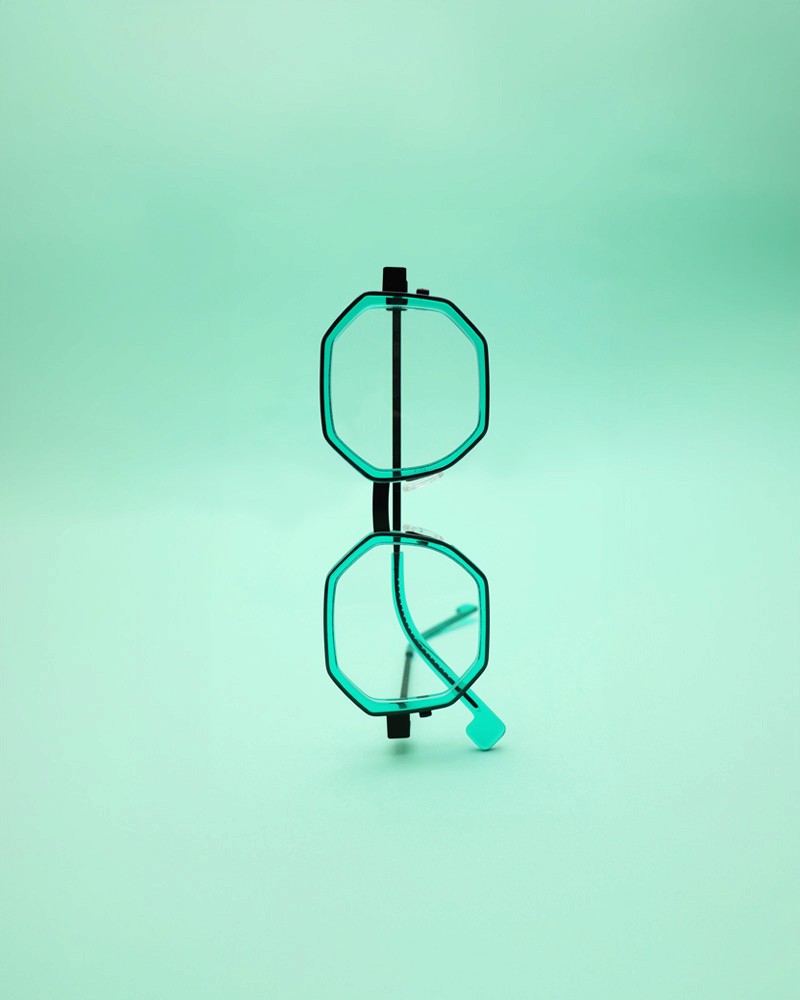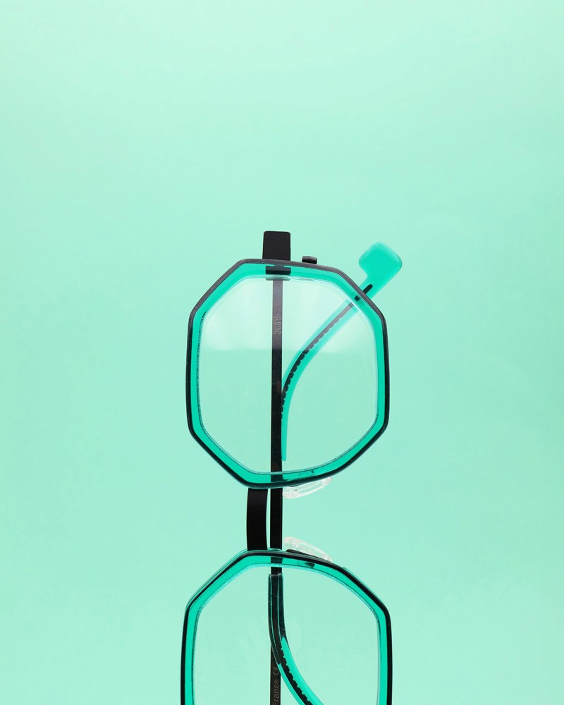 Coloris : Métal noir et acétate translucide vert — Black metal and translucent green acetate