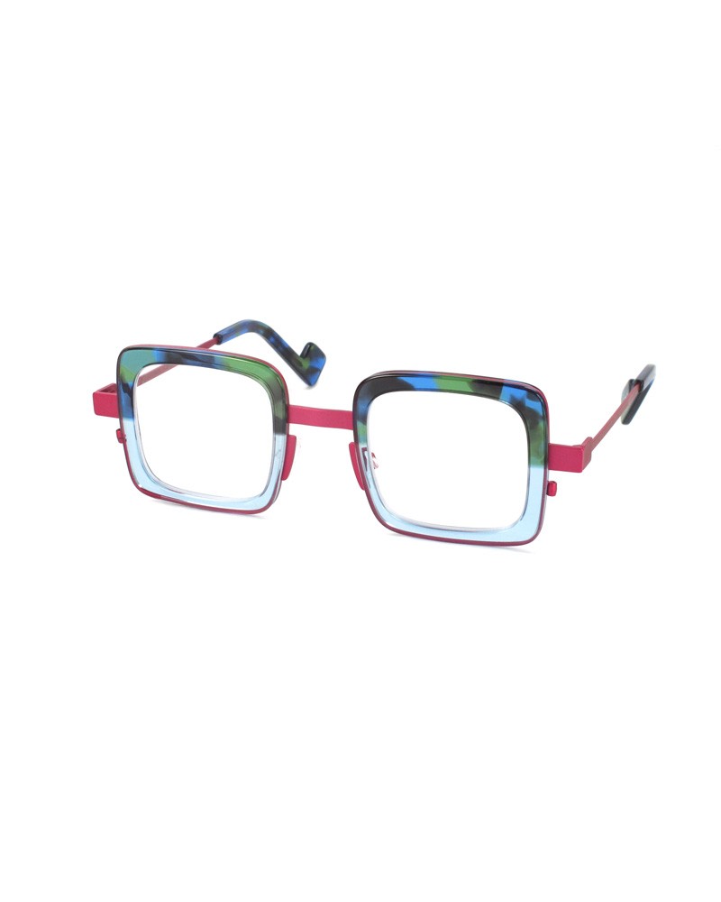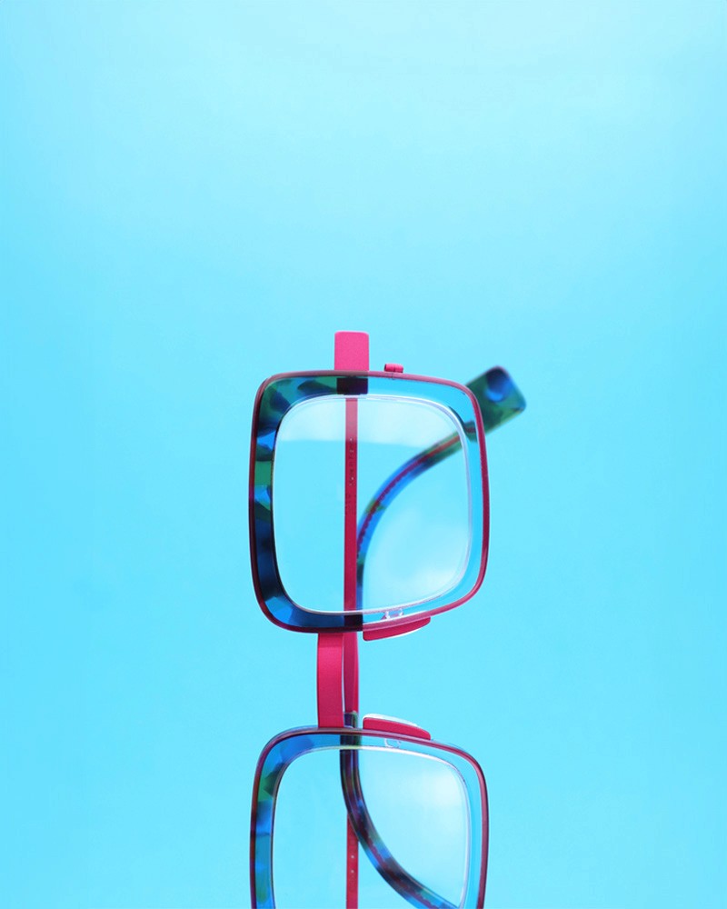 Coloris : Métal rose et acétate écaille bleu et bleu translucide — Pink metal and blue tortoiseshell and translucent blue acetate