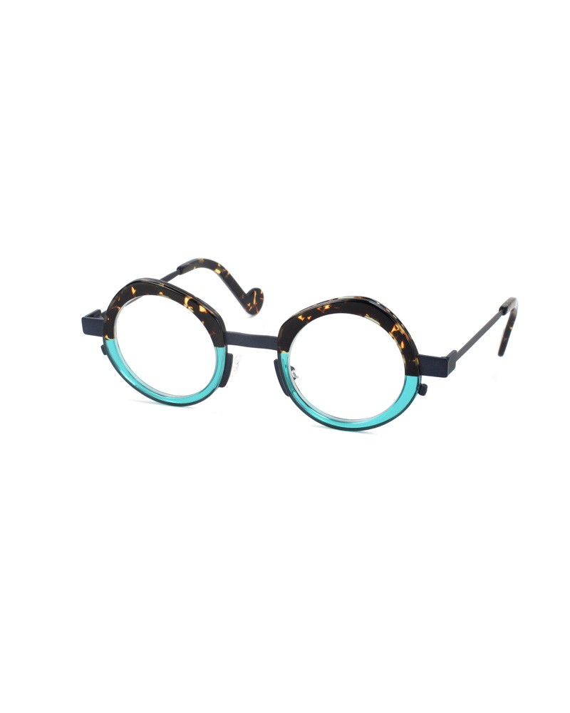 Coloris : Métal bleu et acétate écaille et bleu translucide — Blue metal and tortoiseshell and translucent blue acetate