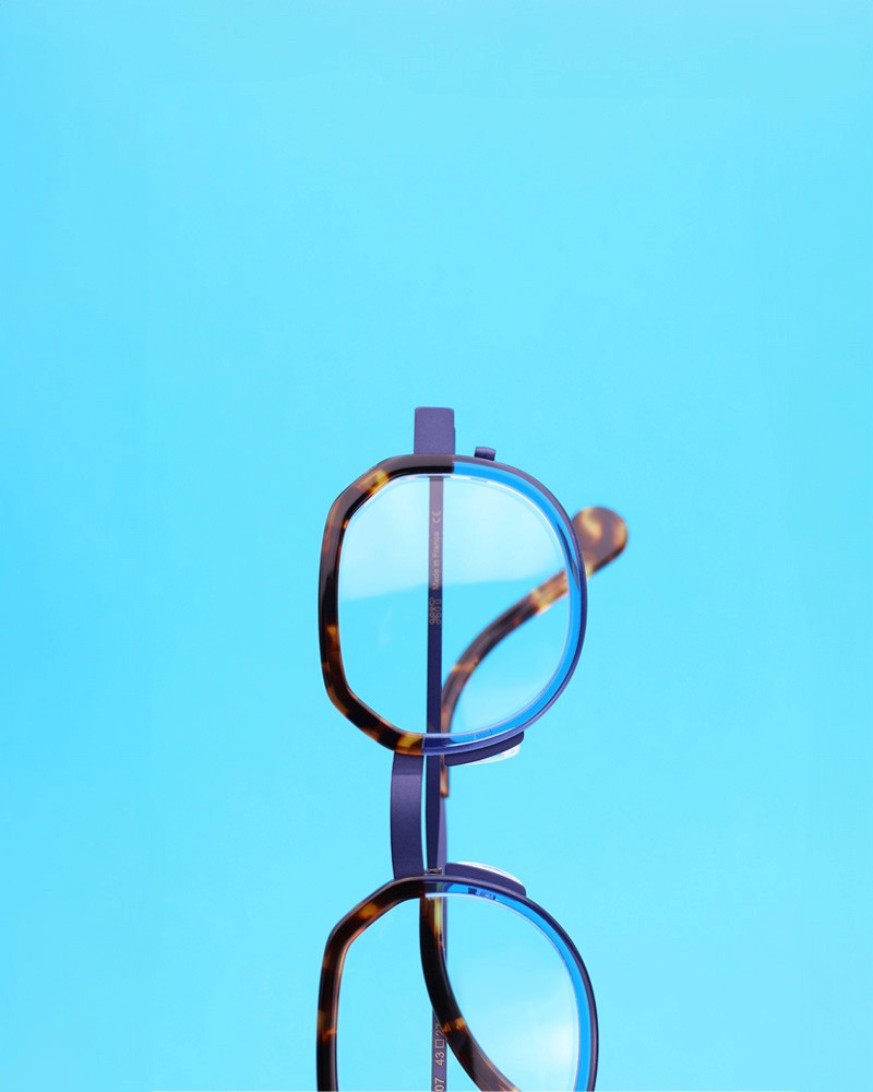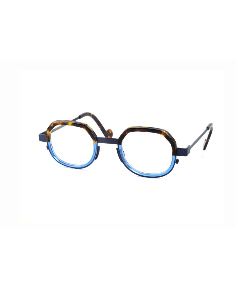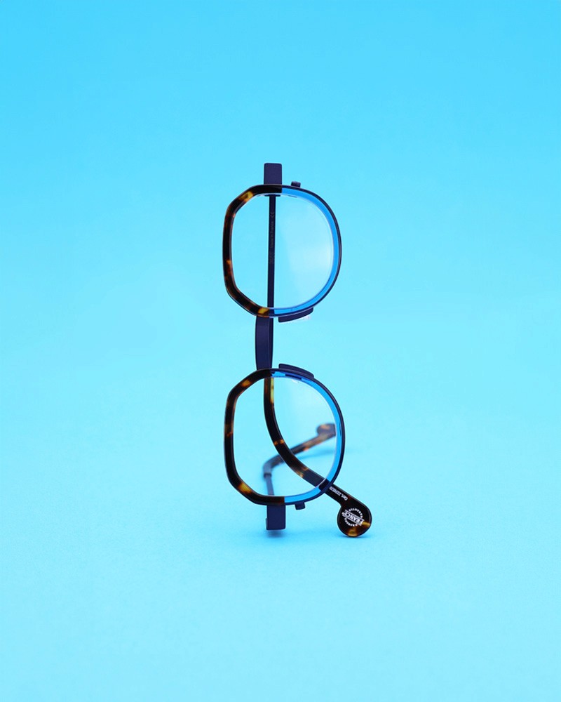 Coloris : Métal bleu et acétate écaille et bleu translucide — Blue metal and tortoiseshell and translucent blue acetate