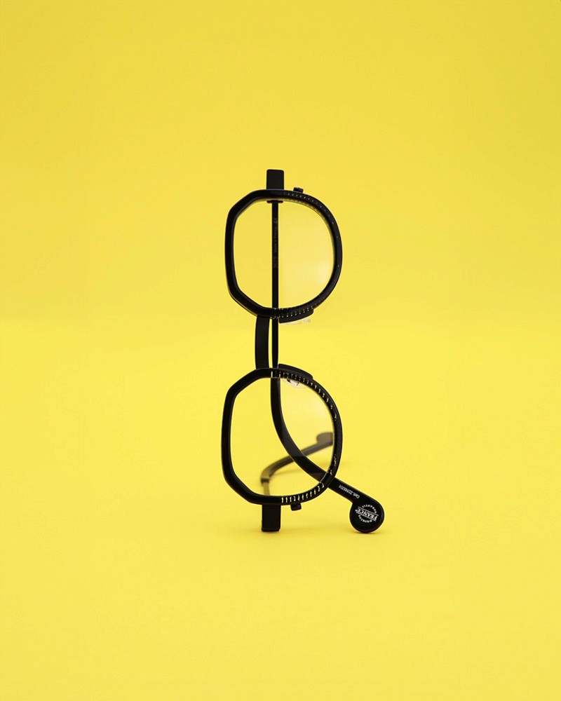 Coloris : Métal noir et acétate cube noir translucide — Black metal and tortoiseshell and translucent saffron acetate