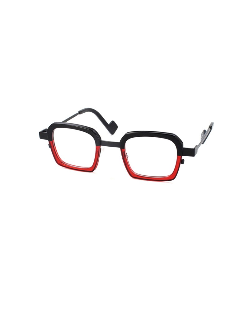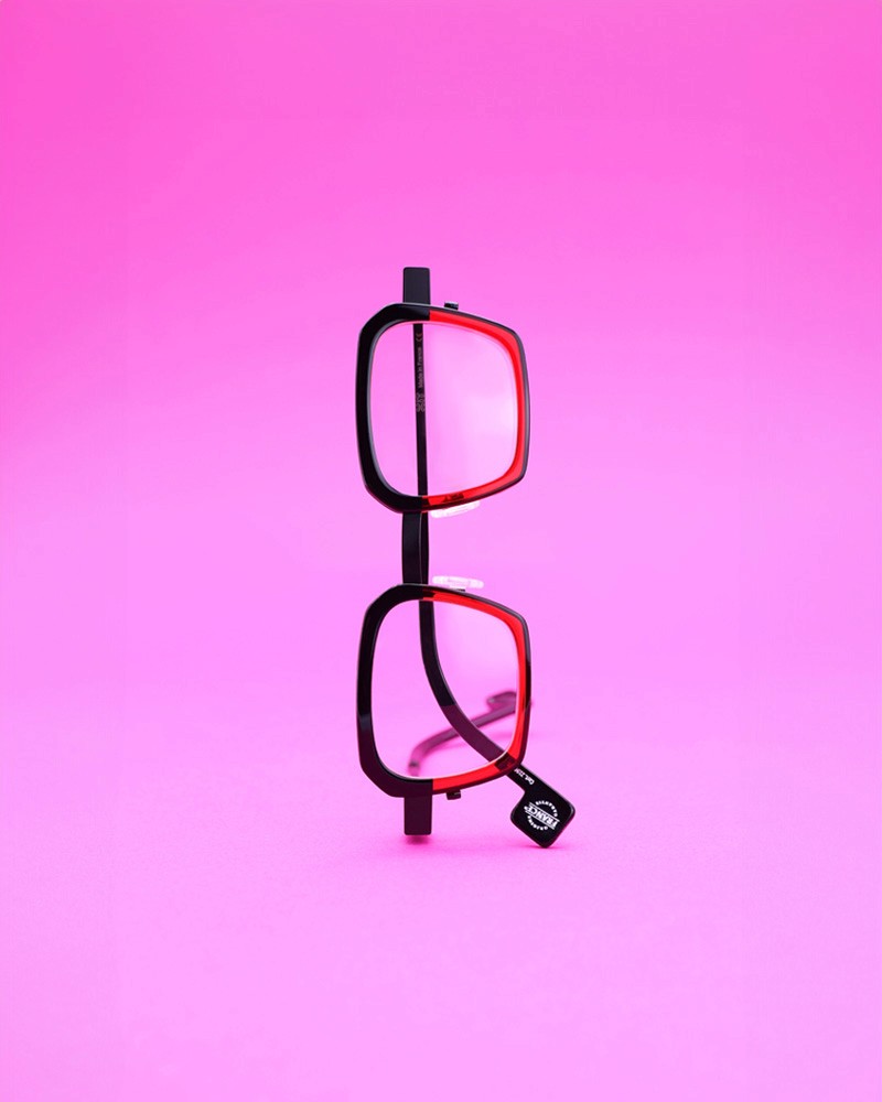 Coloris : Métal noir, acétate noir et rouge translucide — Black metal, black acetate and translucent red