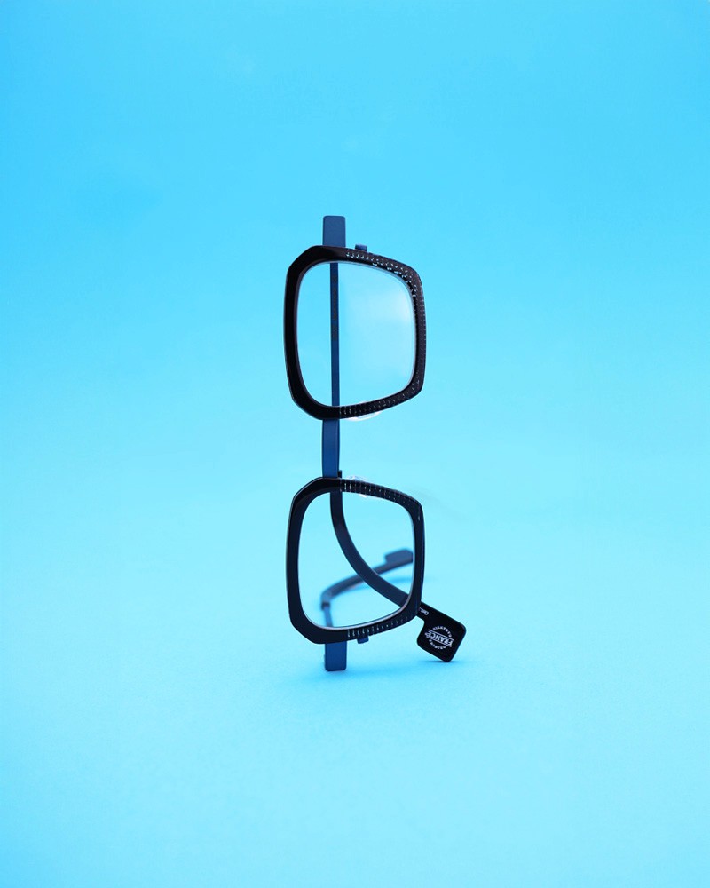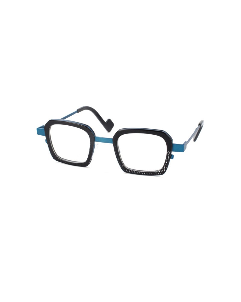 Coloris : Métal bleu et acétate cube noir translucide — Blue metal and translucent black acetate cube