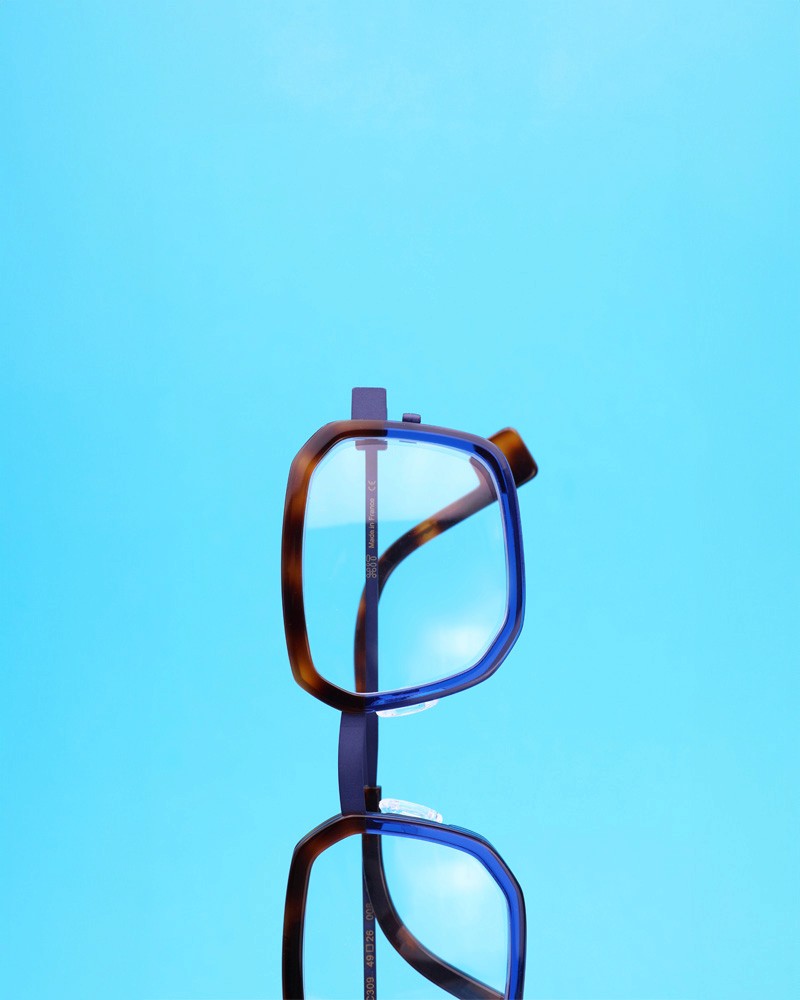 Coloris : Métal bleu, écaille et bleu translucide — Blue metal, tortoiseshell and translucent blue