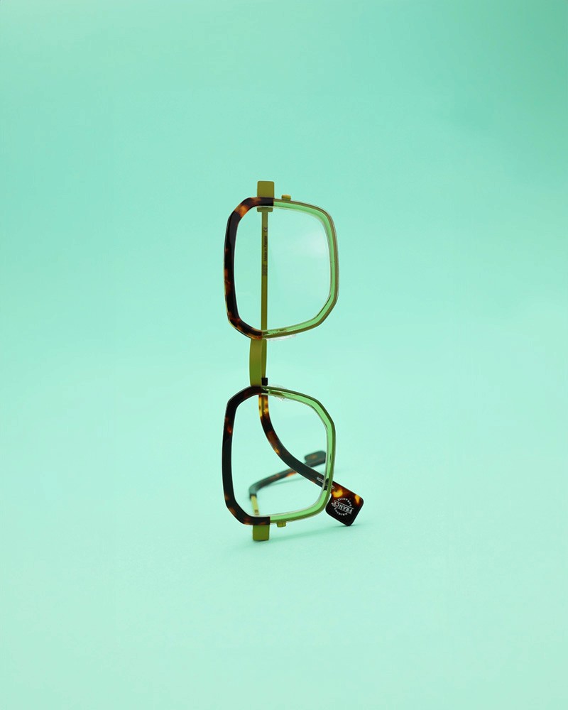Coloris : Métal vert, écaille et vert translucide — Green metal, tortoiseshell and translucent green