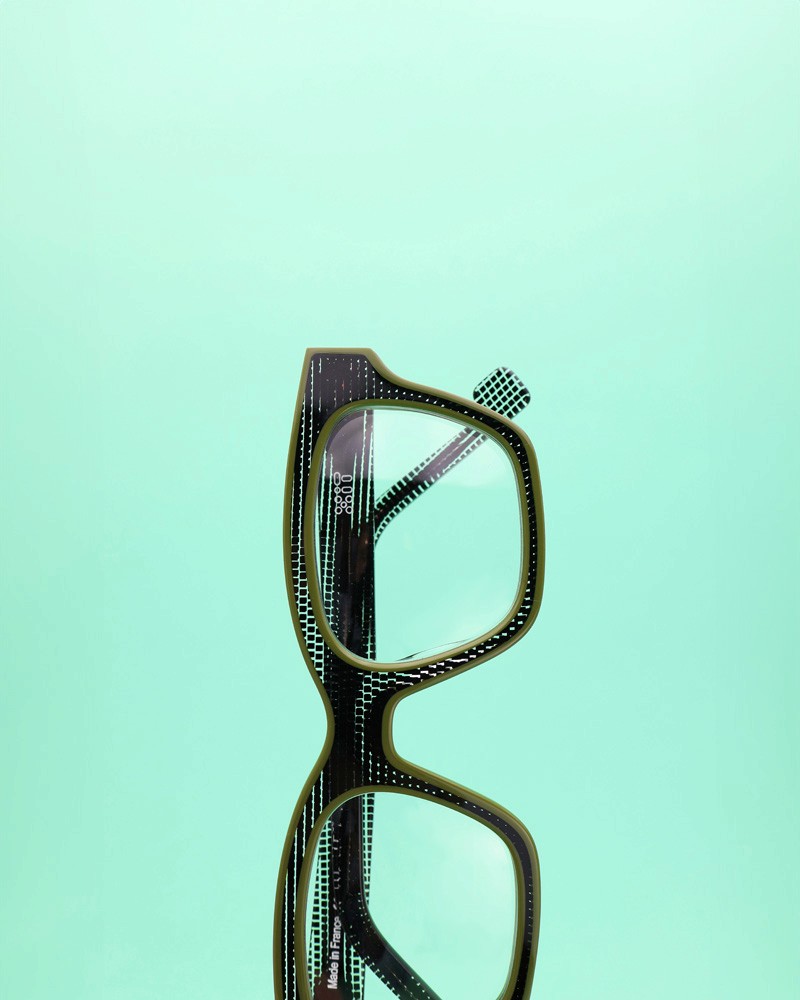 Coloris : Acétate cube noir translucide et vert — Translucent black acetate cube and green