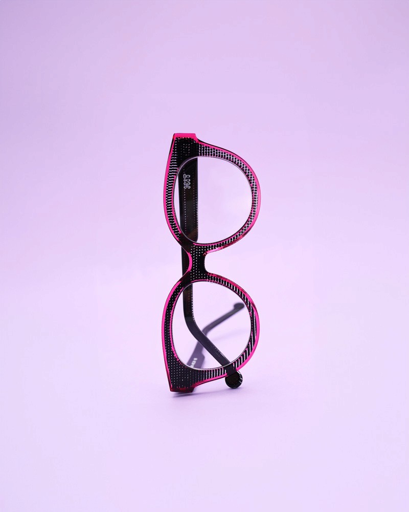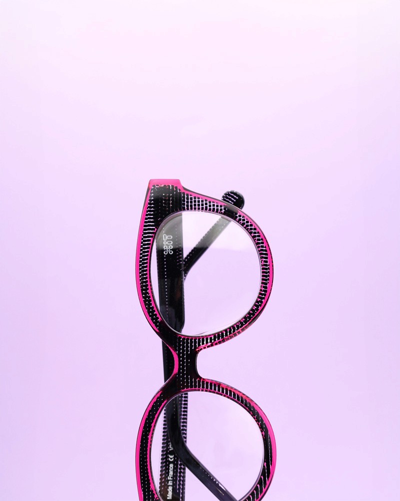 Coloris : Acétate cube noir translucide et rose translucide — Translucent black acetate cube and translucent pink