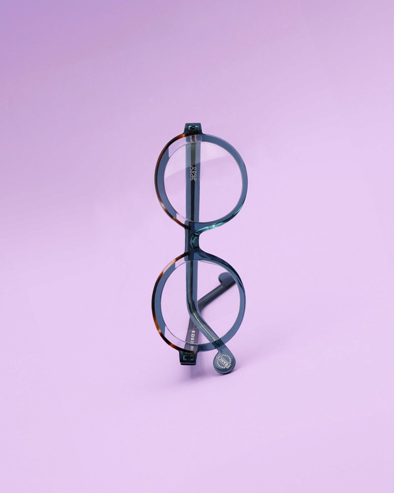 Coloris : Bleu translucide et écaille — Translucent blue and tortoiseshell